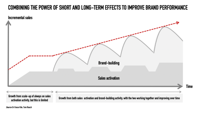 Now look at the waves. That’s what happens when you add brand-building into the mix. Each wave pushes your results a bit higher. Over time, those efforts stack up. The red dotted line shows how growth picks up when brand and sales work together. And the green line is the path to steady, continuous growth. Combining a GTM plan and an ABM strategy will enable you to not just chase quick wins but to set yourself up to win, year after year.